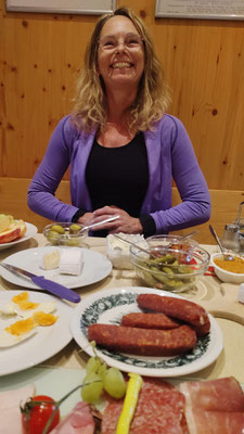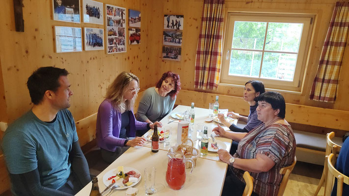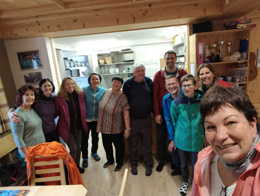 Da einige von den Montagsturner:innen noch nie auf unserer Hütte in Brand waren, wurde am ersten Oktober-Wochenende 2025 eine gemeinsame Wanderung mit Hüttenjause von Karl Meier und Sigrid Hämmerle-Fehr organisiert und alle Montagsturner:innen dazu eingeladen. Es war ein gemütlich kulinarischer Hock - natürlich mit Hütten-Führung durch Karl persönlich. Und ja, es war so gesellig, dass wir es bestimmt mal wiederholen ;-)