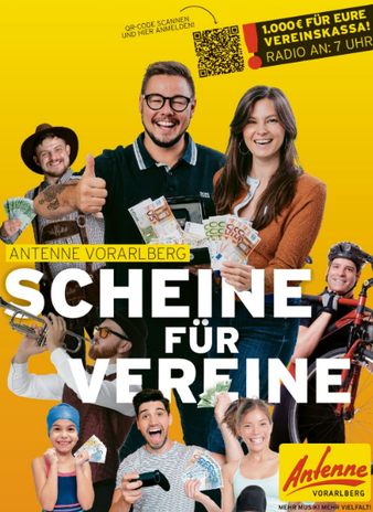 „Scheine für Vereine“ - je mehr Klicks, desto höher wird die Summe! Bei ANTENNE VORARLBERG haben alle Vereine im Ländle die Chance, ihre Kasse mit bis zu 1.000 Euro aufzustocken.