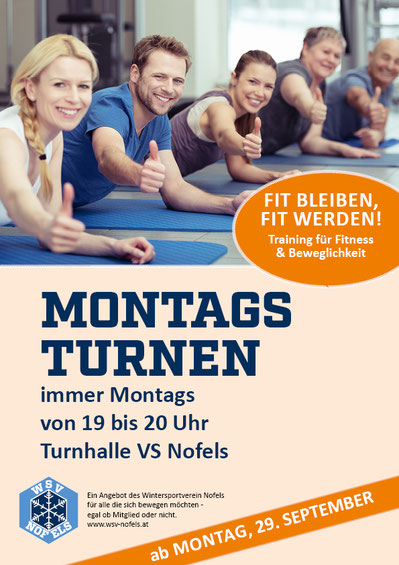 Am Montag, 29. September startet das WSV Montagsturnen wieder. Seit Jahren ist dieses Fitnesstraining ein Fixpunkt im Trainingsangebot.